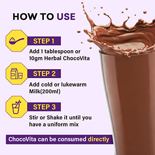 100% Ayurvedic: Herbal Chocovita made with 15+ ayurvedic herbs ashwagnadha, brahmi, satavari, Gokshur, Vidarikand, Bhrungaraj, Punarnava and Tulasi extract to to promote immunity and support fight against infection.