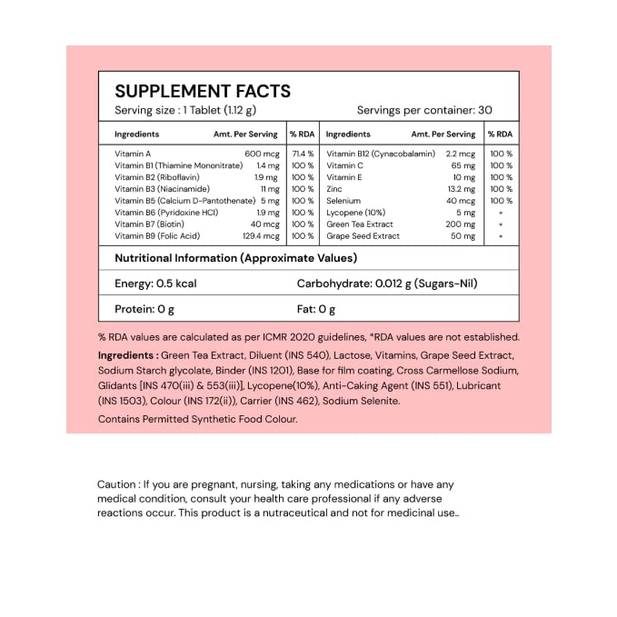 Promotes Skin Health: The potent antioxidants in our supplement support healthy skin by reducing inflammation, promoting collagen production, and protecting skin cells from damage caused by free radicals and environmental factors.