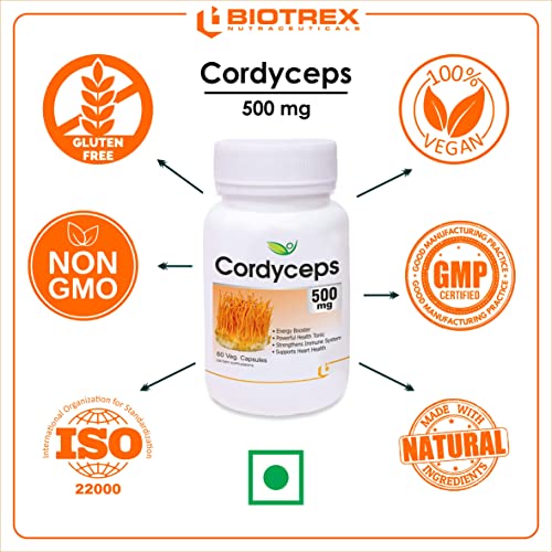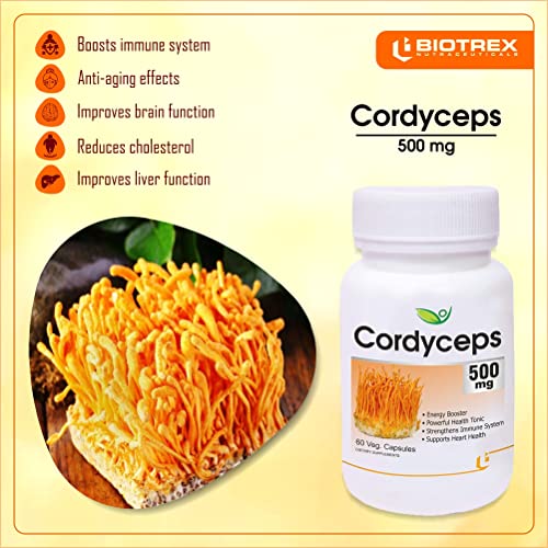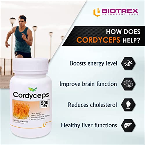 Biotrex Nutraceuticals cordyceps 500mg helps in boosting energy level, improving brain function, lowering blood sugar and keeping liver functions healthy.