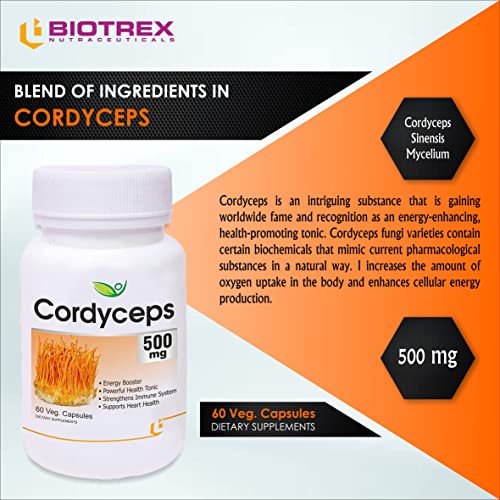 Biotrex Nutraceuticals Cordyceps 500mg – 60 Veg Capsule, Dietary supplement
