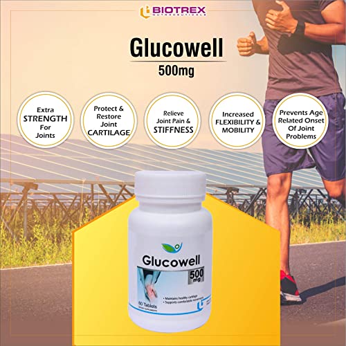 Biotrex Nutraceuticals glucowell 500mg helps develop and renew cartilage, better joint movement and flexibility, strengthens bone.