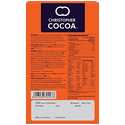 This is a pack of 2 of 100g Christopher Cocoa Super Kids Cocoa Health Drink. Christopher Cocoa is a tribute to the adventure that ‘discovered’ cacao beans which led to the modern indulgence called chocolate.
