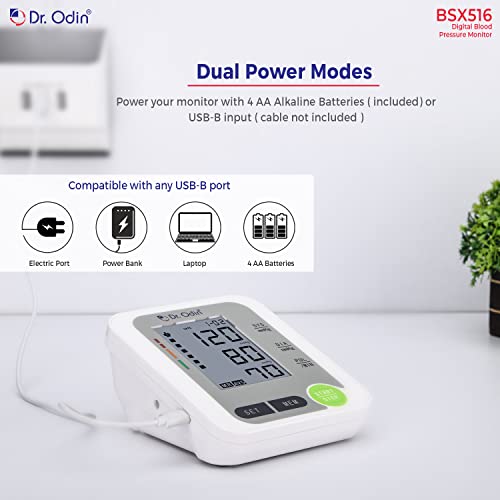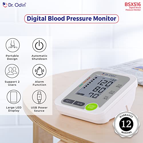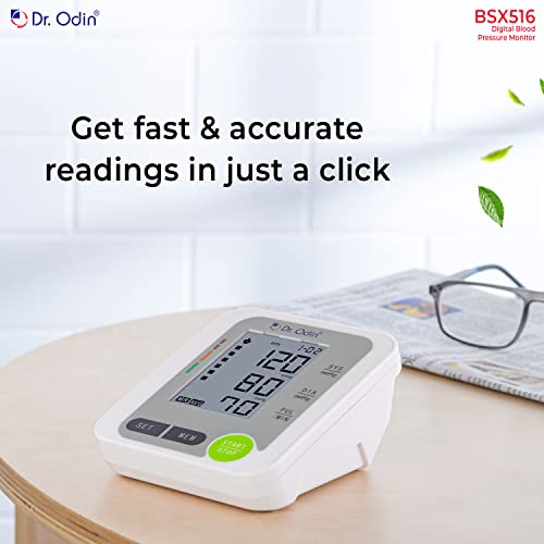 Dr. Odin’s BSX 516 blood pressure monitor is the best electronic bp machine digital for home best for use by adults at home or in doctor’s/nurse’s office. blood pressure checking machine enables a high-speed and reliable measurement of blood pressure as well as the pulse rate. The BP monitor instrument is a highly accurate device and features body movement detection that sets it apart from other blood monitors. It comes with an automatic shutdown system, intelligent pressure, large LCD display, USB port, and memory of 99 x 2.