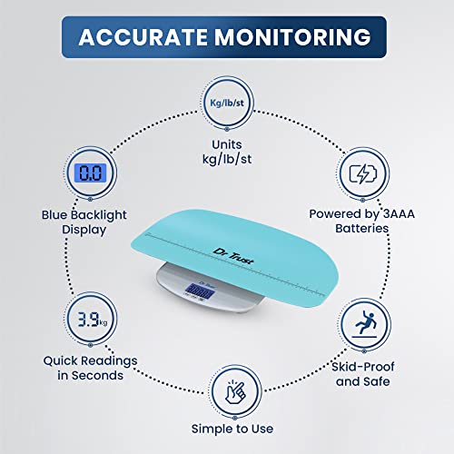 Dr Trust Grow Buddy Digital Scale is for you (or all the parents) to keep a track of their babies’ growth and development easily. This is the best digital baby scale as it comes with all the needed functions and fancy features. Taking good care of a new-born is very important to maintain a healthy life. The most important factor for parents is to ensure that a baby grows within a healthy weight range. The easiest way to ensure this thing is maintaining a record of weight gain using the baby scale for weighing at home. This is a multi-purpose scale is intended for use on infants, kids, children, mothers and other adult family members with weighing 150 kg maximally. It comes with a detachable plastic scoop platform to weight small or new-born babies while being held by mothers in their hands.