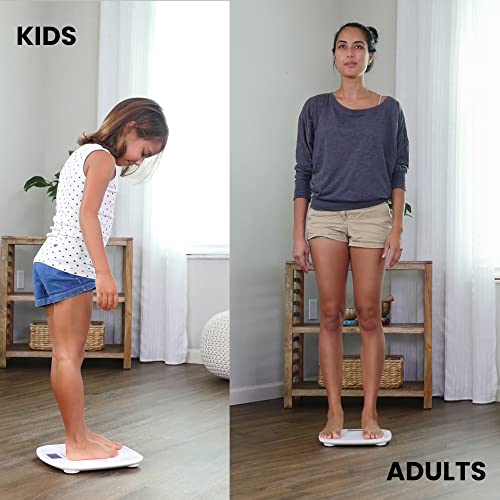 Tare button switches on the scale automatically when you step on it or keep your baby on the weighing plate; The scale switches off after you step off the scale