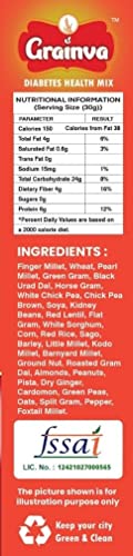 * Grainva diabetes health mix made from 32 varieties of sprouts,Grains and Millets. Easy to digest,No added sugar,No artificial colour, No preservatives.