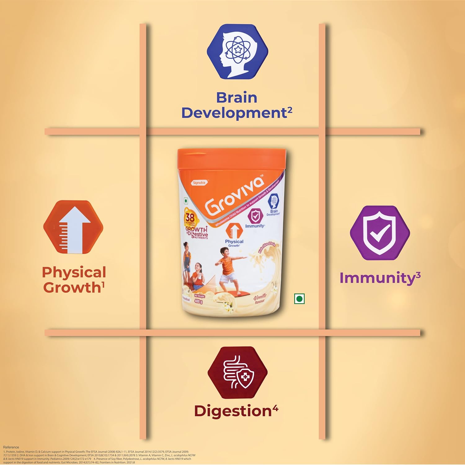 GrovivaTM is a customized wholesome child nutrition brand made as per ICMR guidelines . GrovivaTM is scientifically formulated with 38 key nutrients wherein Certi 5TM signature nutrients support the daily nutrition in children.
