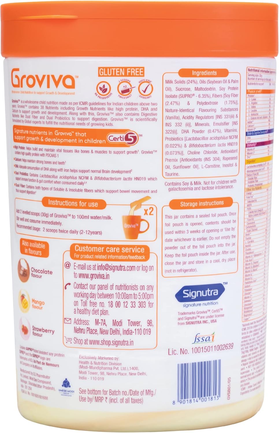 Groviva is available in four tasty flavors : Chocolate, Vanilla, Mango & Strawberry.