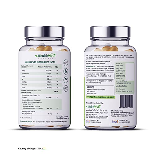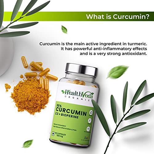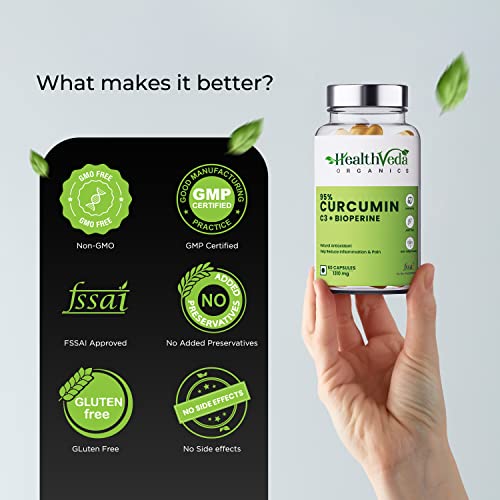 SAFE & EFFECTIVE: Health Veda Organics Curcumin C3 + Bioperine Capsules are safe & effective to use without any side effects. 100% pure, Natural and Health Friendly with no preservatives or harmful chemicals.