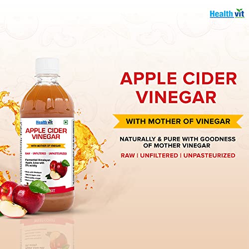 Benefits Of Healthvit Apple Cider Vinegar 500ml Natural & Pure With Goodness Of Mother Vinegar Naturally Fermented Himalayan Apple Juice with 5% Acidity Made with Himalayan Natural Apple Juice Naturally Fermented Best Quality Vinegar Rich in Natural Components. Benefits: Weight Management. Improves Digestion: Dilute apple cider vinegar in water, add honey and have it at least thirty minutes prior to a heavy meal to stimulate digestive juices for better breakdown of food. Boosts Energy and Improves Immunity, A swig of Apple Cider Vinegar diluted in water is just the right potion to flush the toxins out of your system.