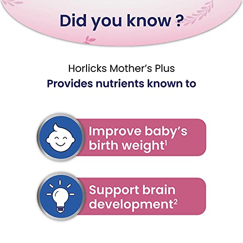 Horlicks Mother’s Plus contains micronutrients (Iron, Iodine, Folic Acid, Zinc, Magnesium, Vitamin A, B6, B12, Vitamin D and protein) that are known to support healthy birth weight. It contains DHA and Choline known to support Brain Development