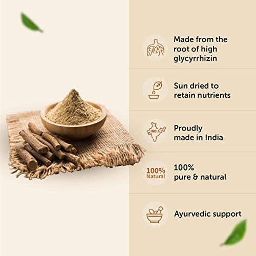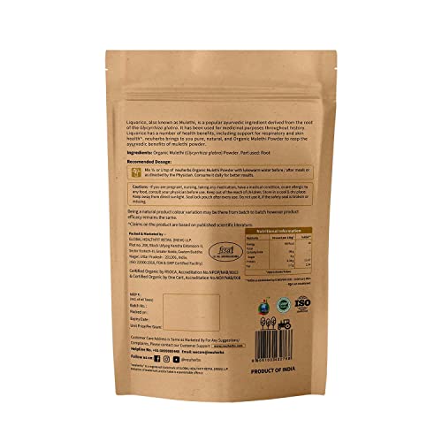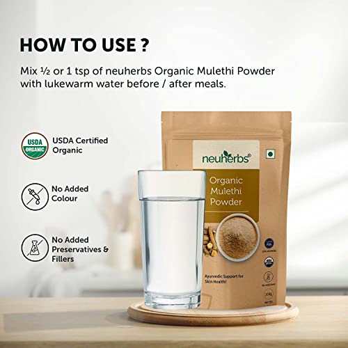 neuherbs brings to you pure, natural & Organic Mulethi Powder prepared from mulethi root only due to its high antioxidant & active component glycyrrhizin . It does not contain any added preservatives, colour or fragrances.