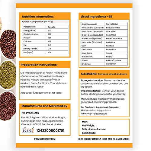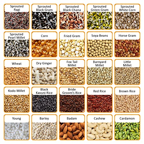 Totally 25 Ingredients Added includes Sprouted Grains, millets (Ragi, Black Chana, Black Gram, Green Gram, White Corn, Pearl Millet) and Nuts
