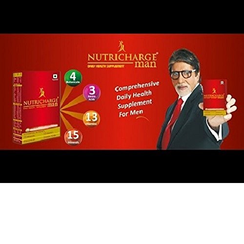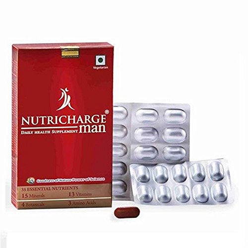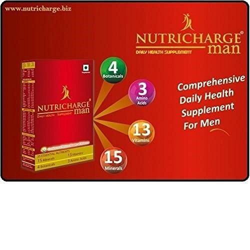 Nutricharge is specially formulated to help heart healthy, sharpens immune system, hair and skin health and improves energy. This is an advanced daily health product crafted to meet daily nutritional requirement of men. This is a combination of botanicals, vitamins, minerals and amino acids. Functions of Nutricharge: o normal functioning of immune system o healthy bone growth and development o beneficial for normal vision and healthy blood o for brain development and its function o production of red blood cells o for healthy muscles and their functions o for energy and its metabolism o boosts immune and nervous system o 100 % vegetarian o 1 tablet in a day.