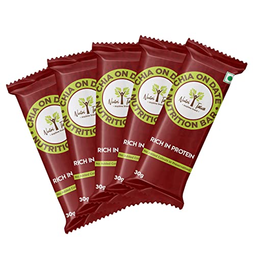 NUTRITATVA Nutrition Protein Energy Bar | Healthy Diet Snack | High Fiber, All Natural, Low Calories (Chia on Date Bar, Pack of 5)