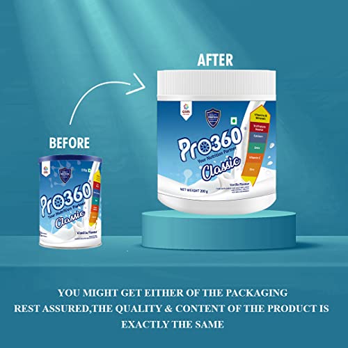 Pro360 presents Pro360 Classic Nutritional Protein Supplement Powder Drink Instant Beverage Mix is fortified with essential nutrients, DHA, Vitamin C, Calcium for their overall health care. With Vanilla flavour this protein powder is a perfect match for everyone in your family.