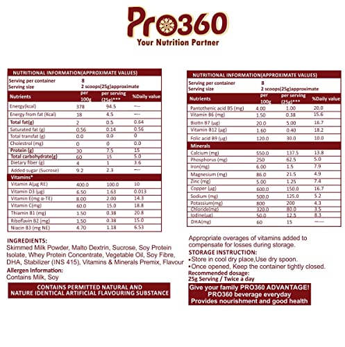 Protein helps in managing weight and increases your strength by building bigger, stronger, and better muscles. Consisting of milk protein, whey protein, and isolated soy protein, the tri-protein formula blended with the nourishing and delicious formula, Pro 360 provides an amazing dose of protein along with fiber, essential vitamins & minerals