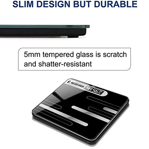 ✅SAFETY & COMFORT – Durable 5mm thick tempered glass provides exceptional sturdiness; Large 11 x 11 inches anti-slip platform, make you feel enjoyable when you’re measuring. 4 “Non-Slip” tops under the balance keep you safe