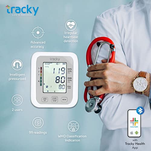 Tracky Advance Digital Blood Pressure Monitor with 360° Accuracy Intelli Wrap Cuff for All Arm Sizes, Resulting Accurate Measurements (White)