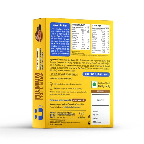 Ubar 10 gms Protein Bar has a crunchy flavor with the goodness of nuts in every bite to sustain 4hrs of energy for a hectic lifestyle to keep you power packed.A good meal replacement for a busy lifestyle