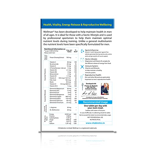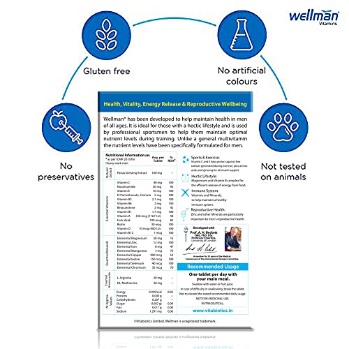Helps to Enhance Reproductive Health: Wellman contains zinc and L-arginine, which are known to enhance reproductive health in men and maintain normal testosterone levels, supporting overall vitality and well-being. Lactose-Free and Gluten-Free: Wellman tablets are specially formulated to be lactose-free and gluten-free, making them suitable for individuals with dietary restrictions or sensitivities.maintain an active lifestyle